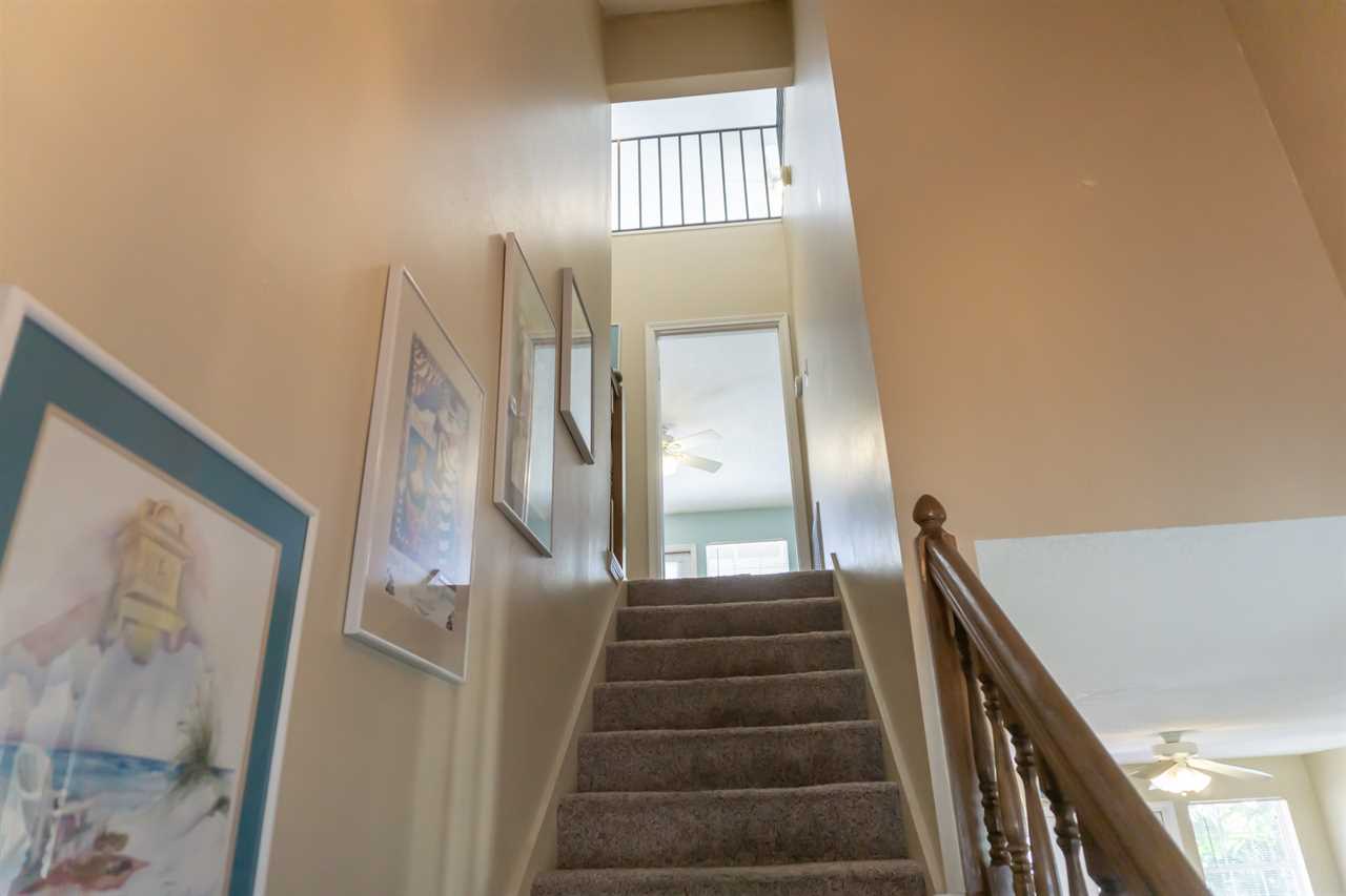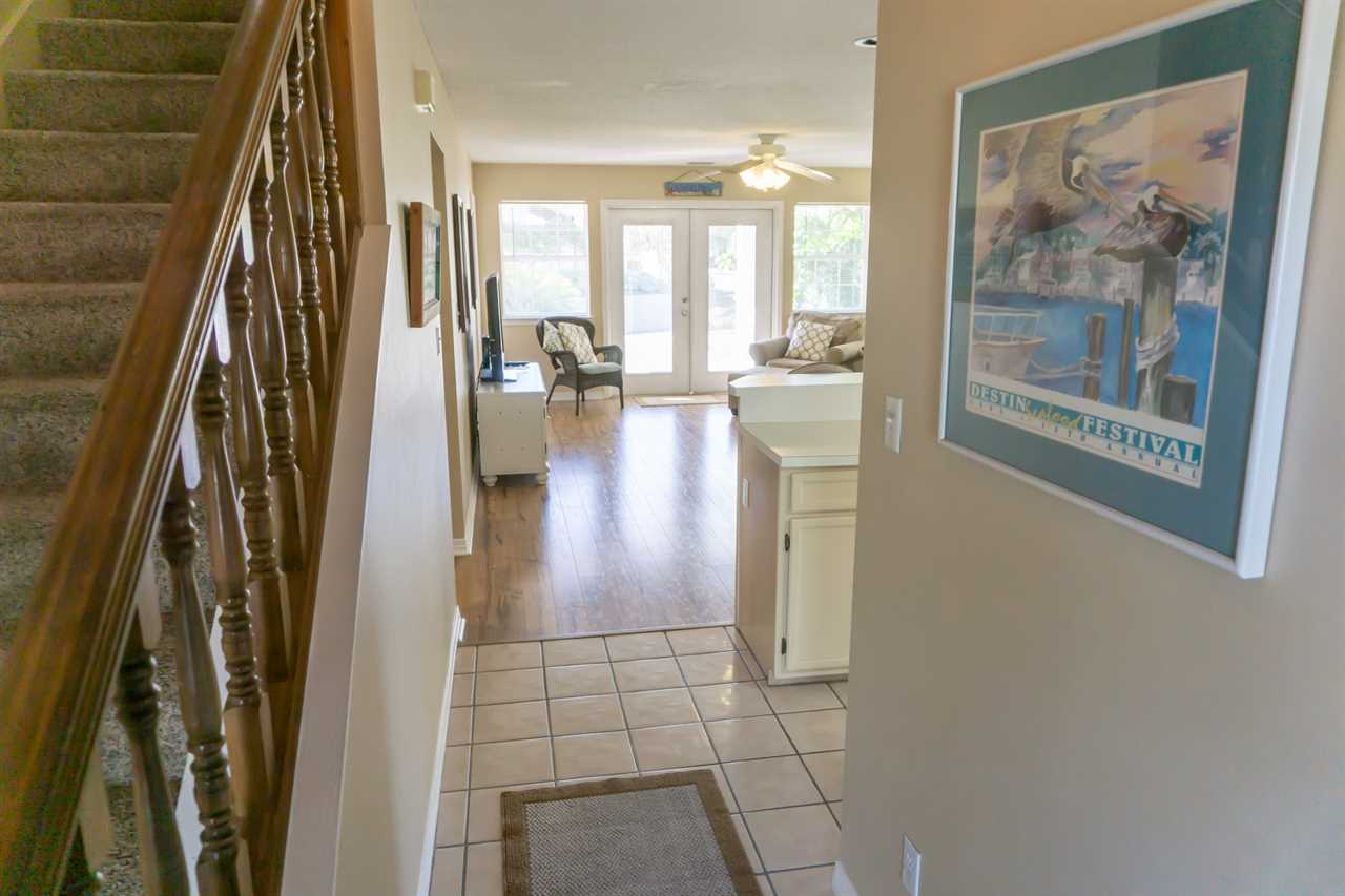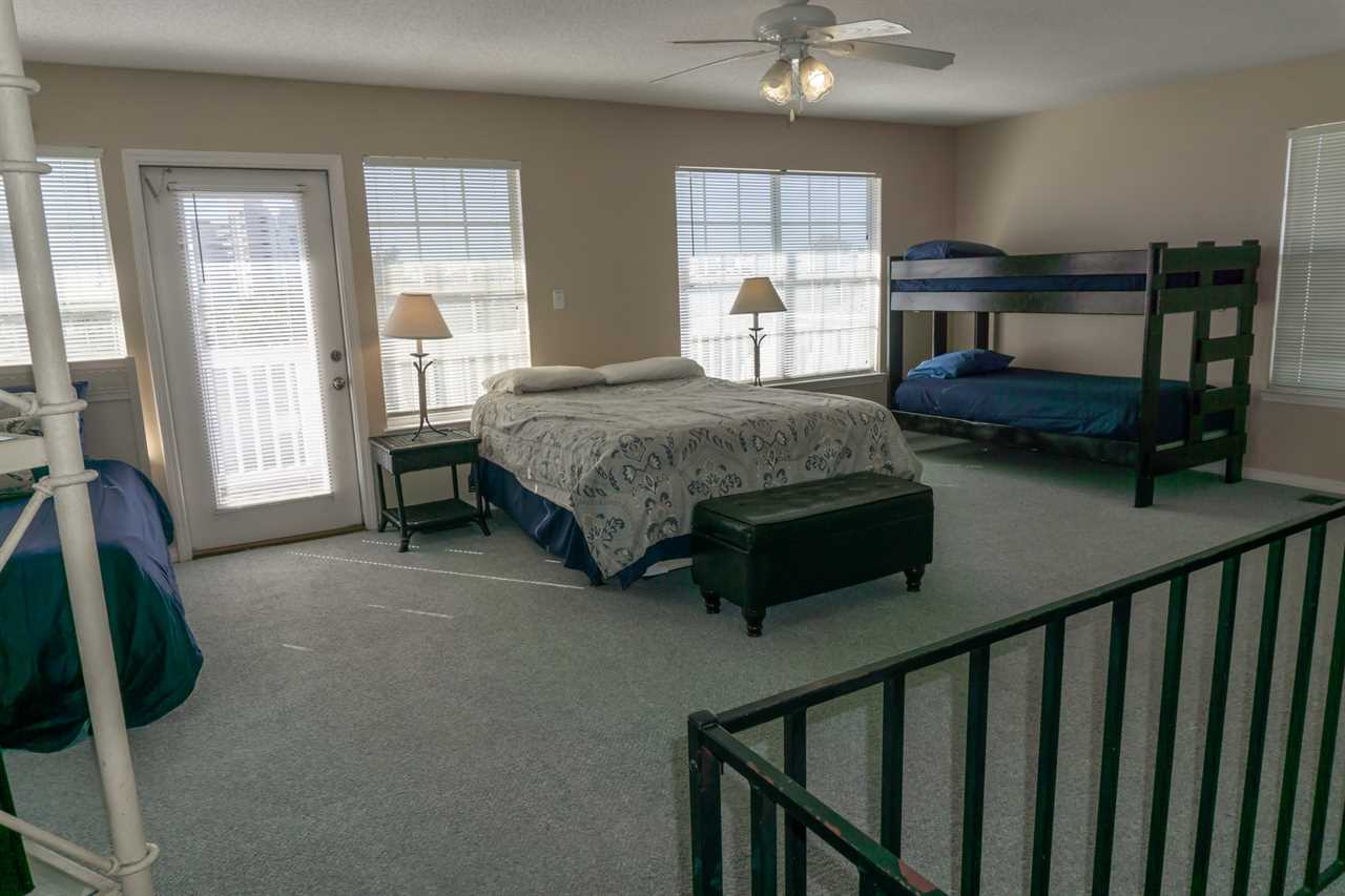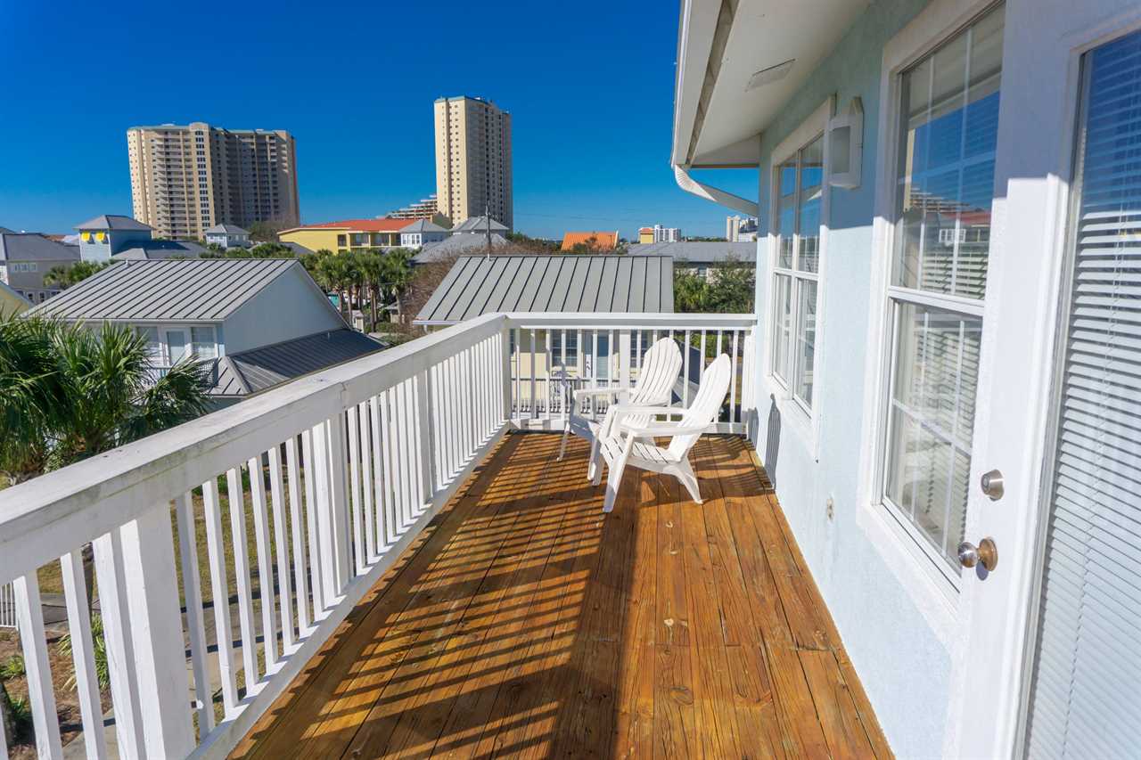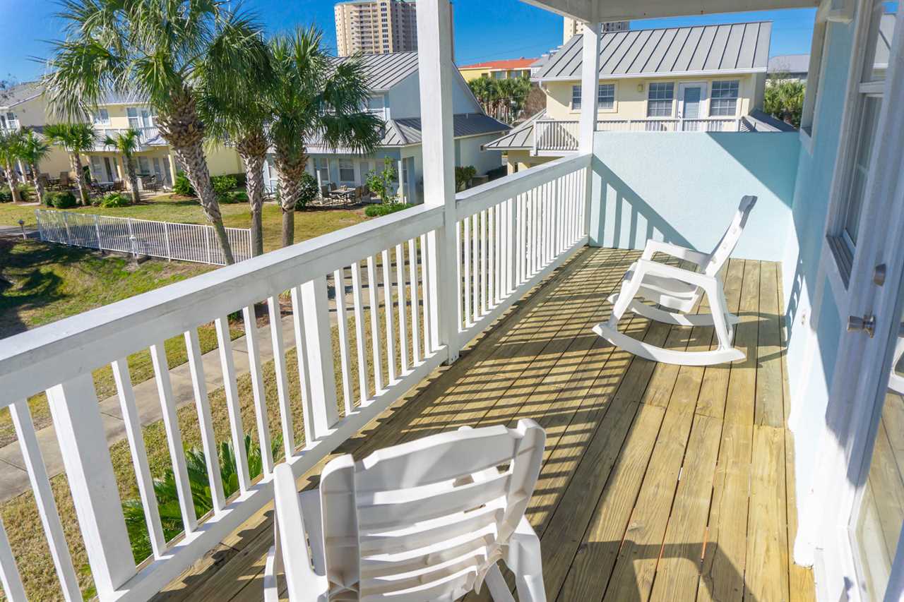 The security and privacy of a completely gated and guarded community adds extra peace of mind for all of Mainsail's guests. Our driveway can easily park three vehicles and our three bedrooms and loft easily sleep up to our twelve person capacity. Our cottage has all the conveniences of home including all kitchen equipment, linens, towels, and full size washer and dryer. The carport provides shade and cover while you carry in groceries to the conveniently located kitchen on the ground level. The two bedrooms on the ground floor have queen beds and share a full bath. The master suite is the entire second floor. A spacious bedroom with king bed and TV opens to a private deck overlooking one of the pools. The master bath has his and her vanities with a walk in shower and stand alone Jacuzzi tub. The third level loft has an open concept with a queen bed, a single bed, and a set of bunk beds, and a full bath. Enjoy incredible sunrises and sunsets from the private third floor open deck!