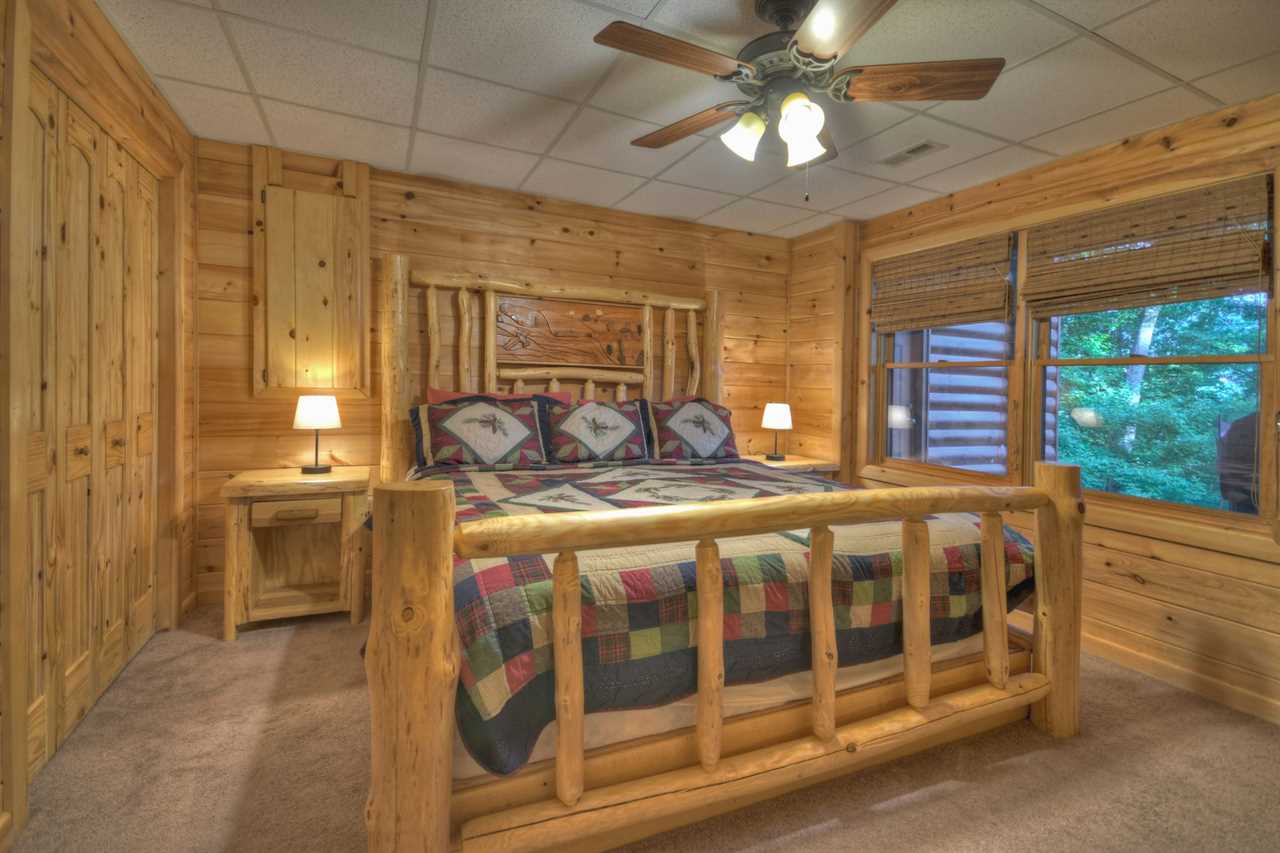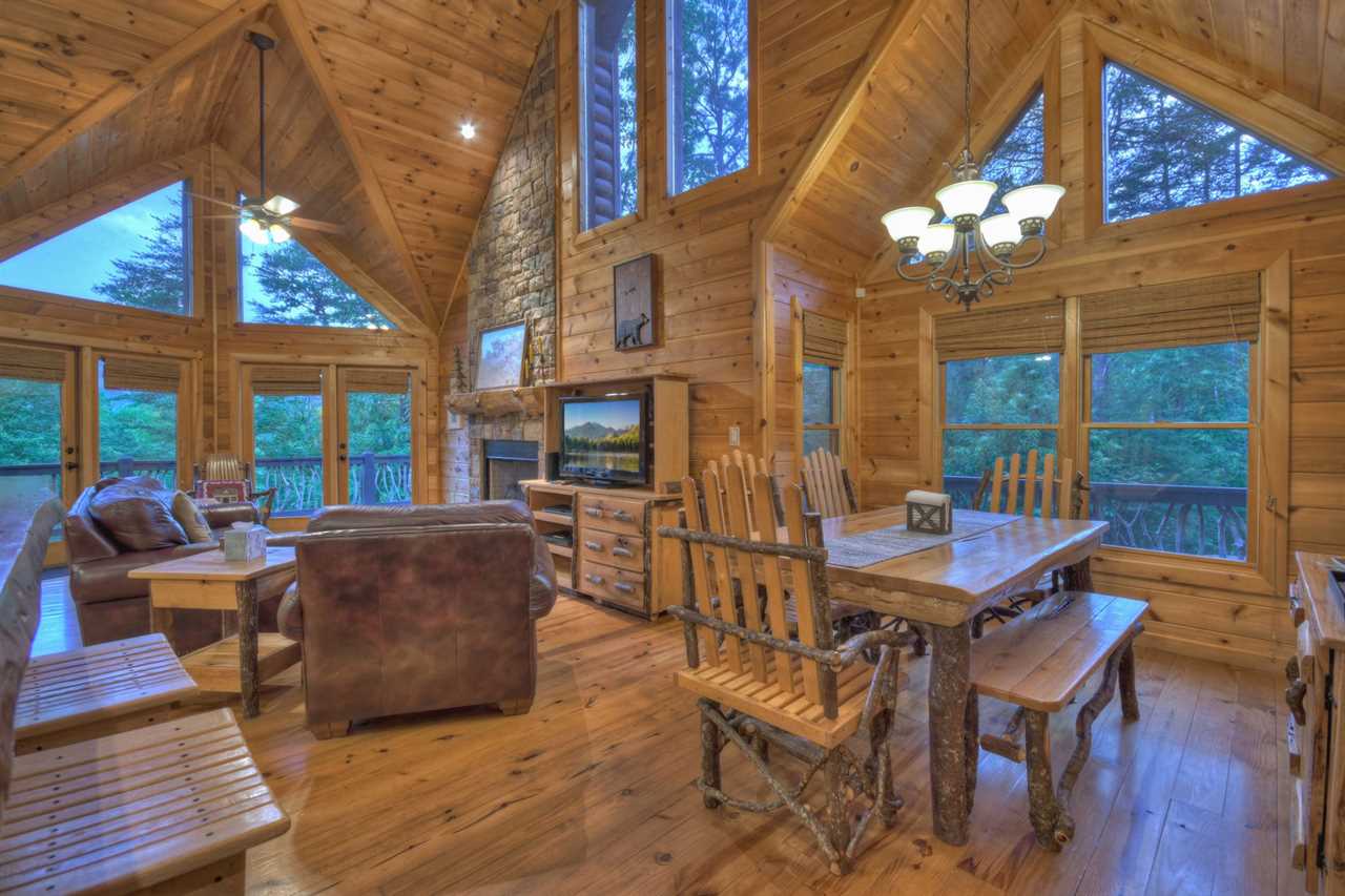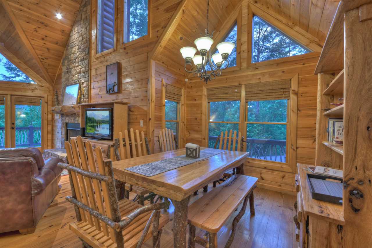 In Georgia's Blue Ridge, in the Aska Adventure Area, is where you'll find Eagles Landing Cabin. All the amenities of Blue Ridge are nearby. Kayaking, tubing, biking, and hiking. Less than five minutes will get you to downtown Blue Ridge. This luxurious cabin's 3 bedrooms and bathrooms include 3 king master suites (one on each level). All were rustically designed with log homes and had plush mattresses. A log twin trundle set is available in the loft for additional sleeping space.