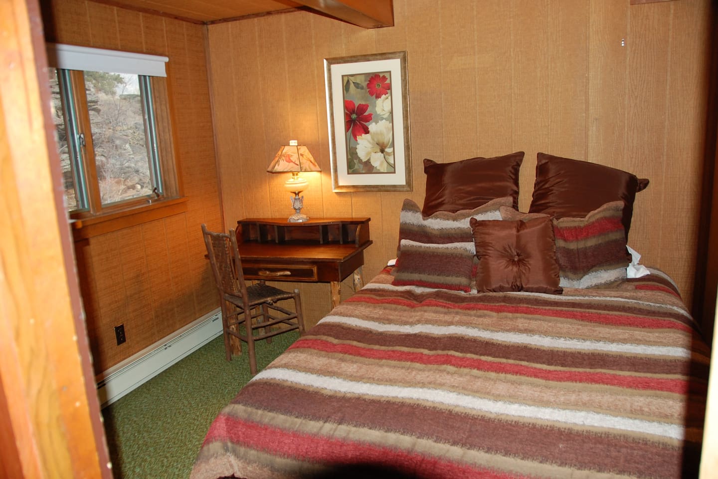 Brown Cabin was built in 1931 and is filled with wonderful reminders of that era including a large stone fireplace and many period furnishings and art work. This unique large cabin (1850 sq ft) is also updated with new bedding, linens, kitchenware, baseboard heating, and updated appliances. Kitchen has fridge, range/oven, dishwasher, microwave.