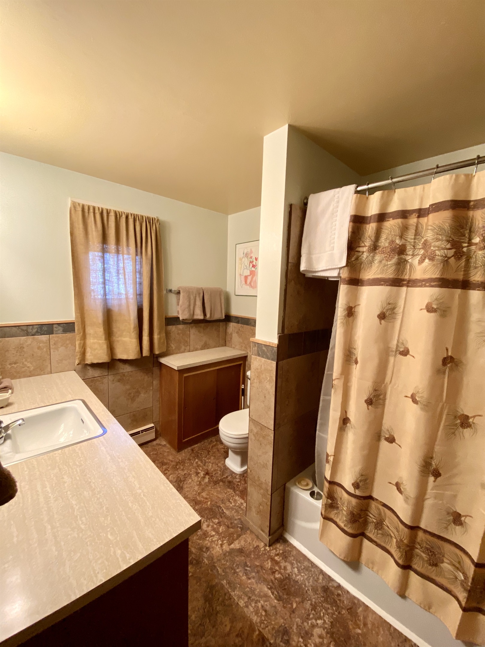 Other bedrooms include: bed 2 – queen bed, bed 3 – 2 twin beds, bed 4 – queen bed. There is one bath downstairs and an upstairs bathroom by the master bedroom. Washer/dryer available in an outside closet during the summer/fall season (closes mid Oct).