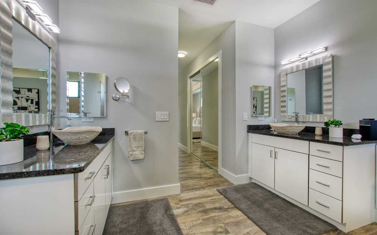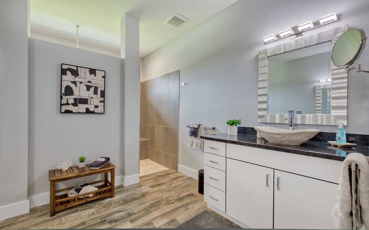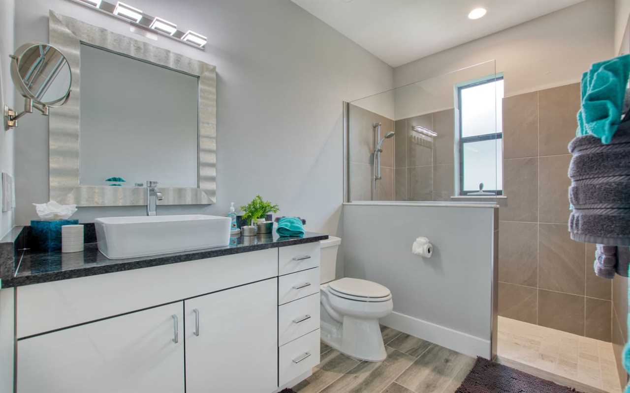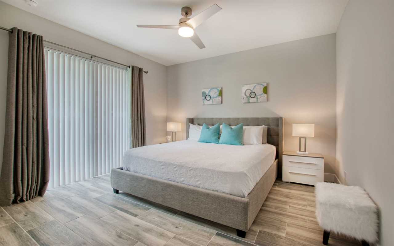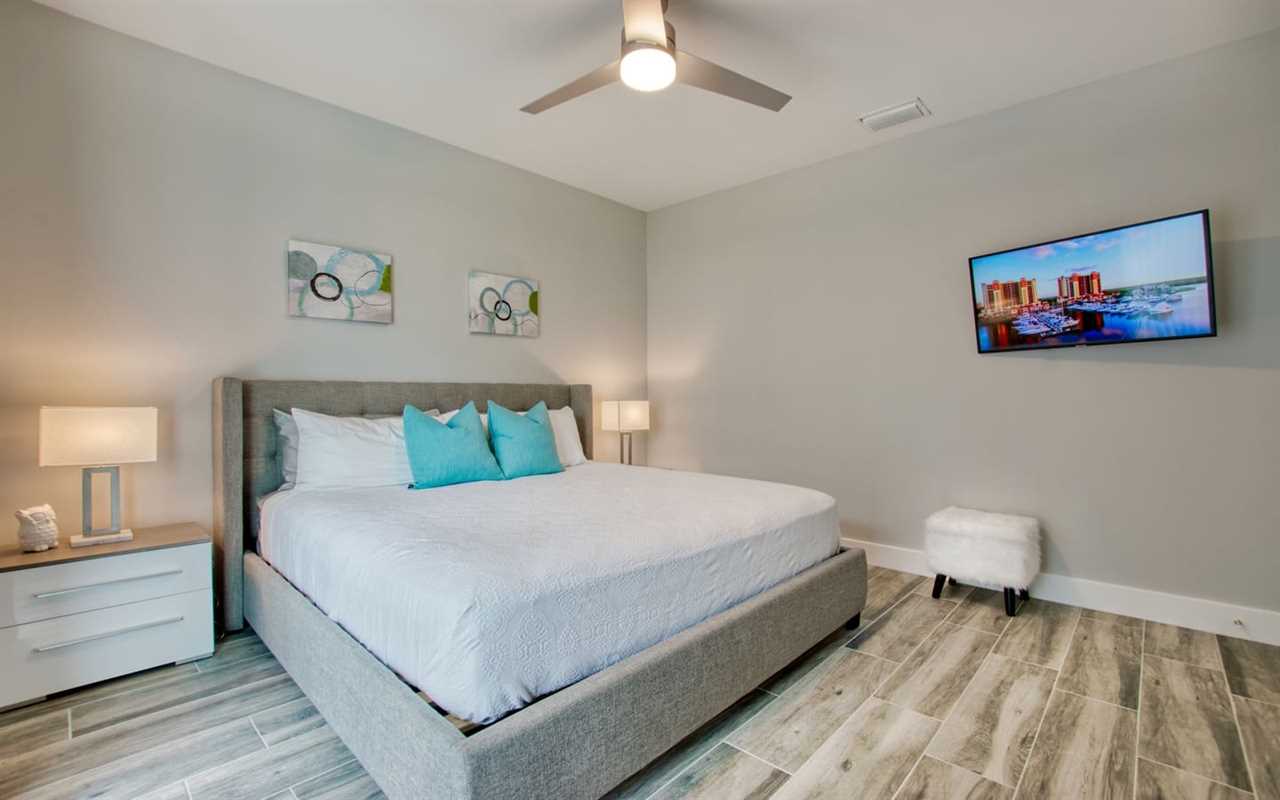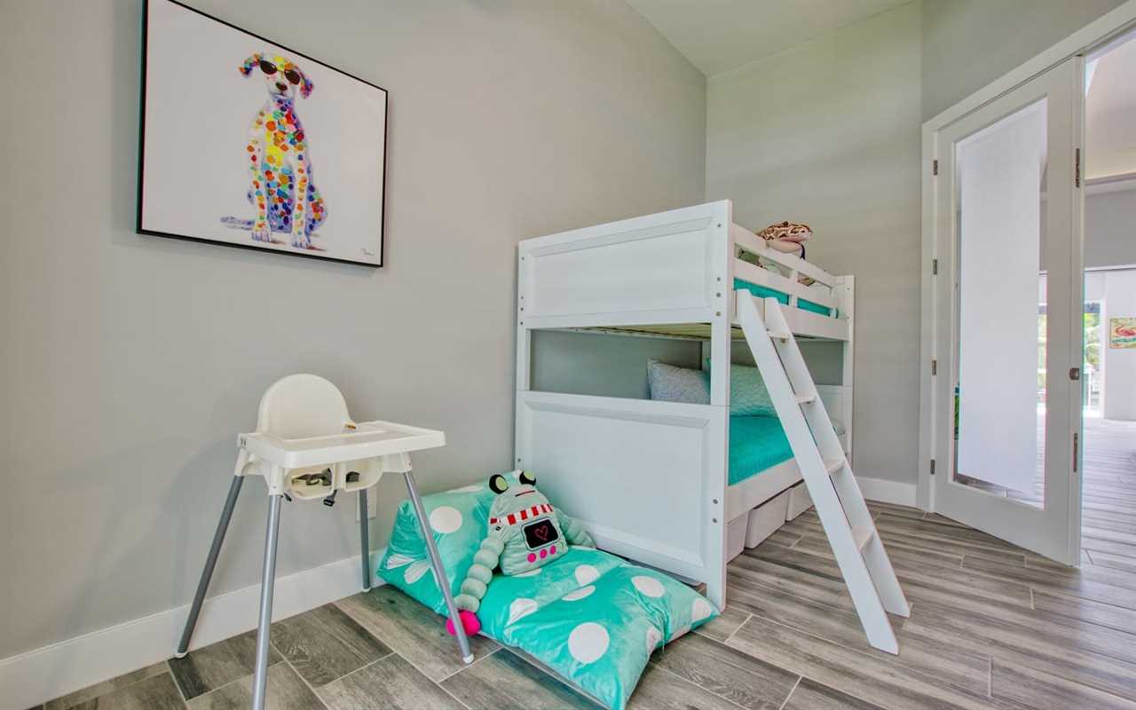 Get a good night's sleep. The master bedroom boasts an upholstered king bed, wall-mounted flat screen TV, and private access to the outdoor space. The en suite bath features a massive shower stall and “his” and “hers” style vanities. The second and third bedrooms each boast king bedrooms sets, wall-mounted flat-screen TVs, and private access to an outdoor space. Each en suite boasts a large shower stall and single-sink vanity. A bonus room is perfect for kids, with a set of twin-over-twin bunks and desk with activities to keep them busy.